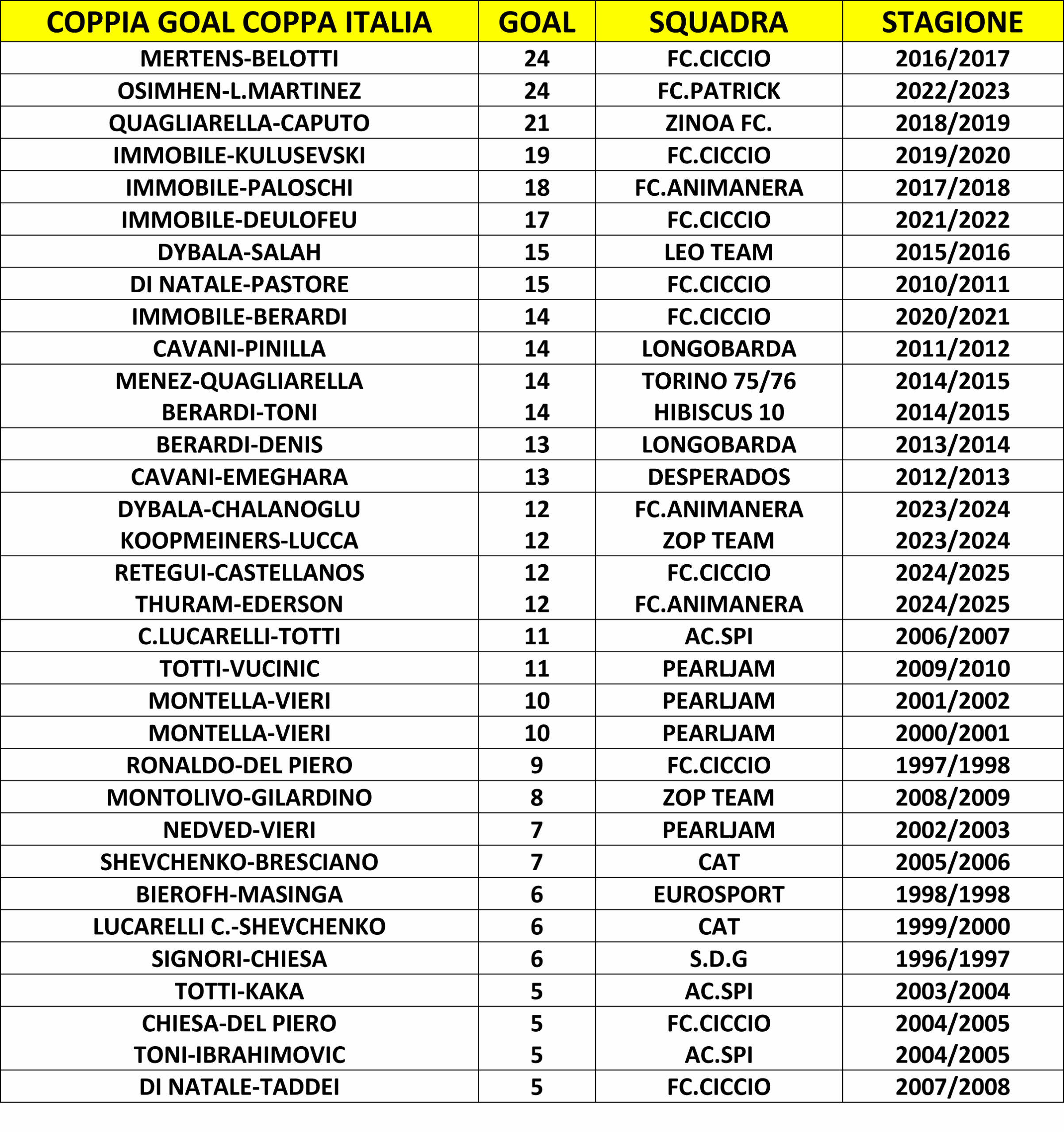 COPPIA GOAL CAMPIONATO