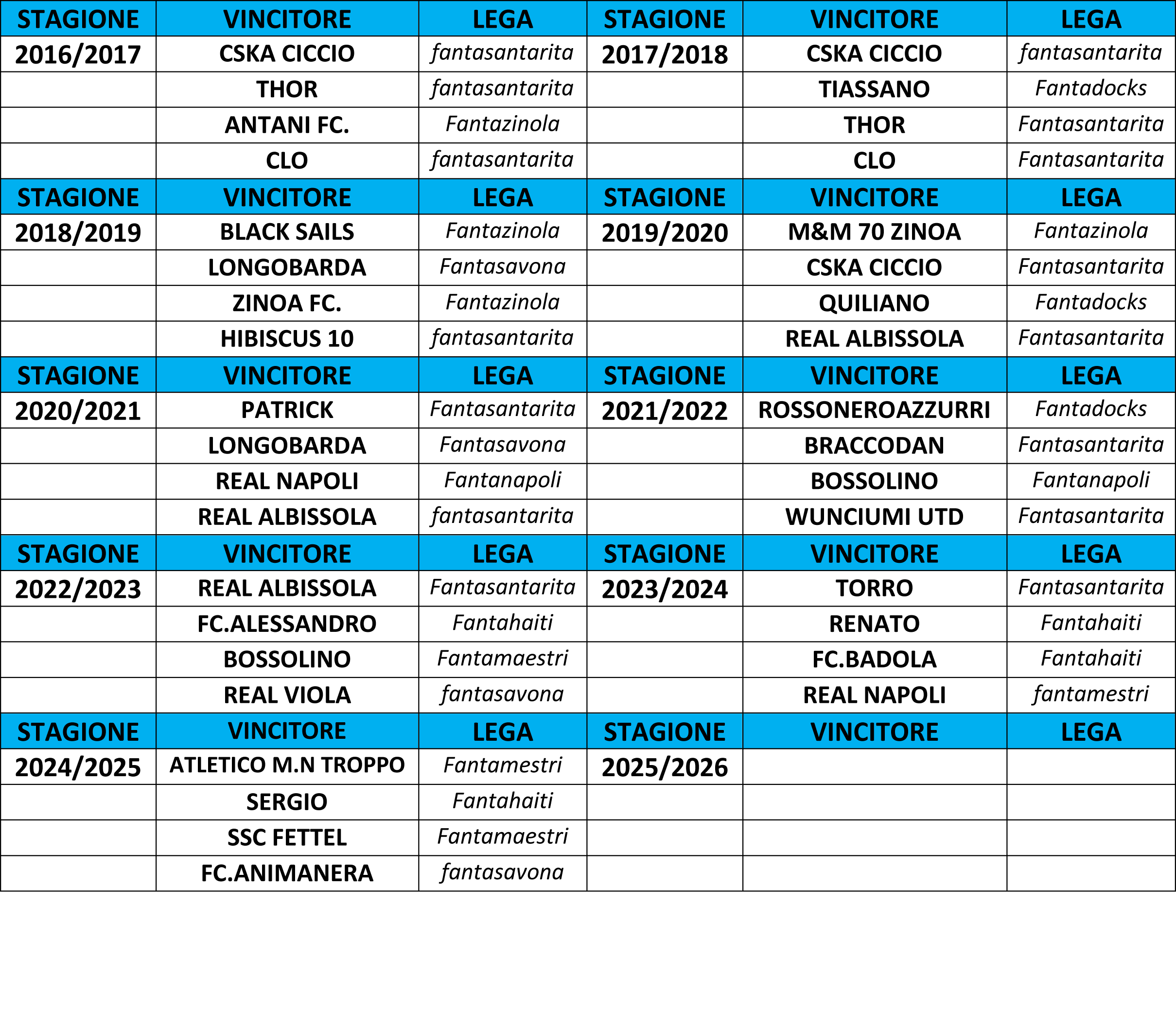• TABELLA FANTA WORLD LEAGUE