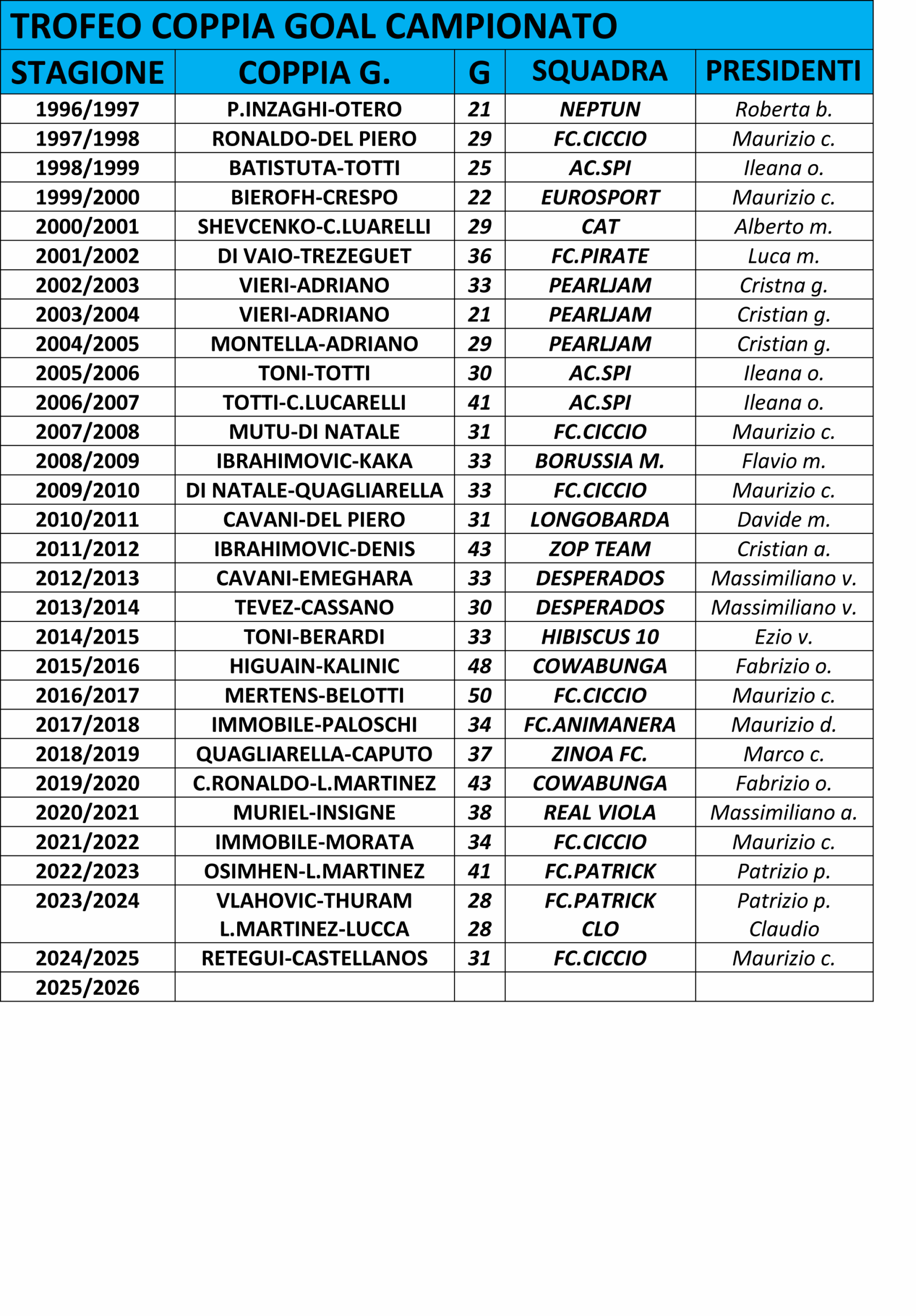 MAGGIOR NUMERO GOAL CAMPIONATO