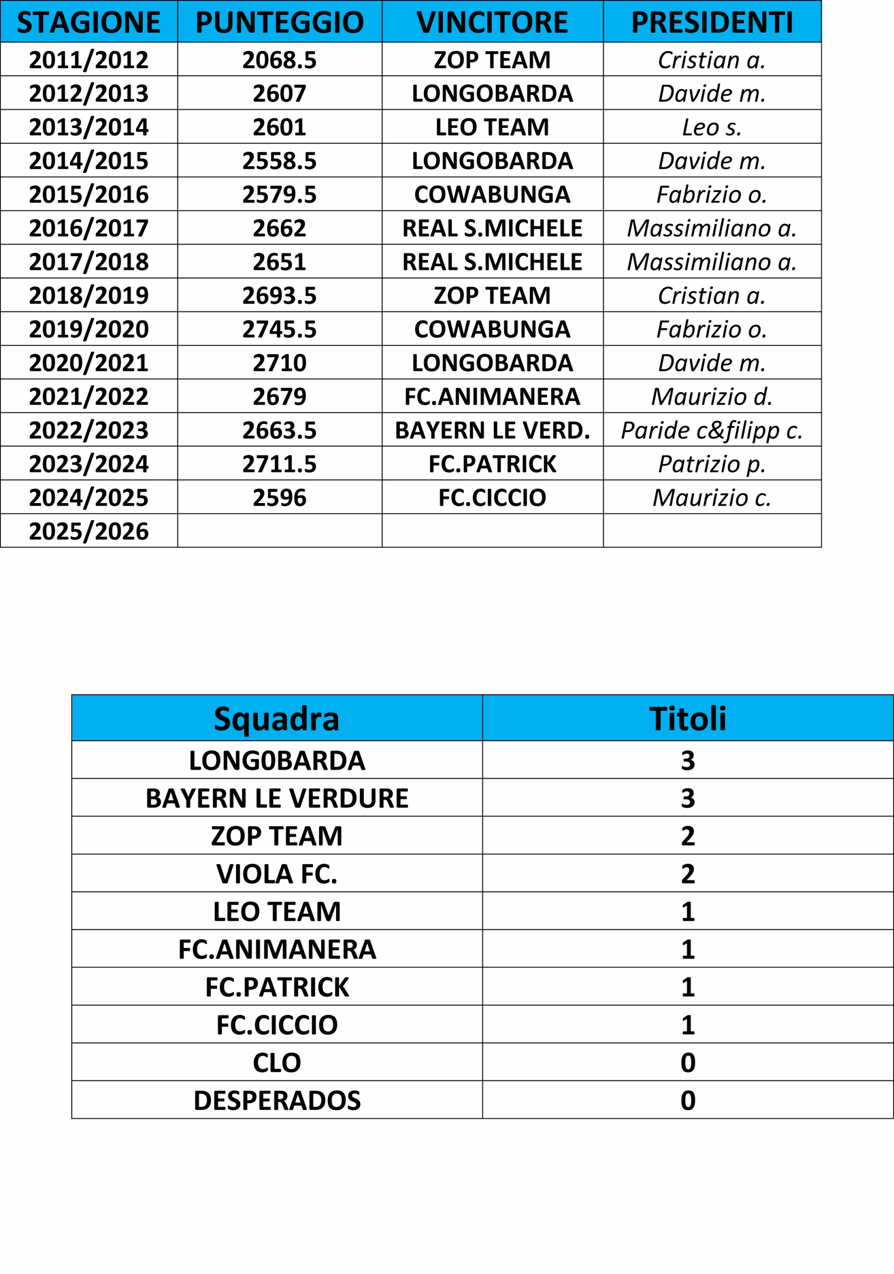 • PIAZZAMENTI FANTA WORLD LEAGUE